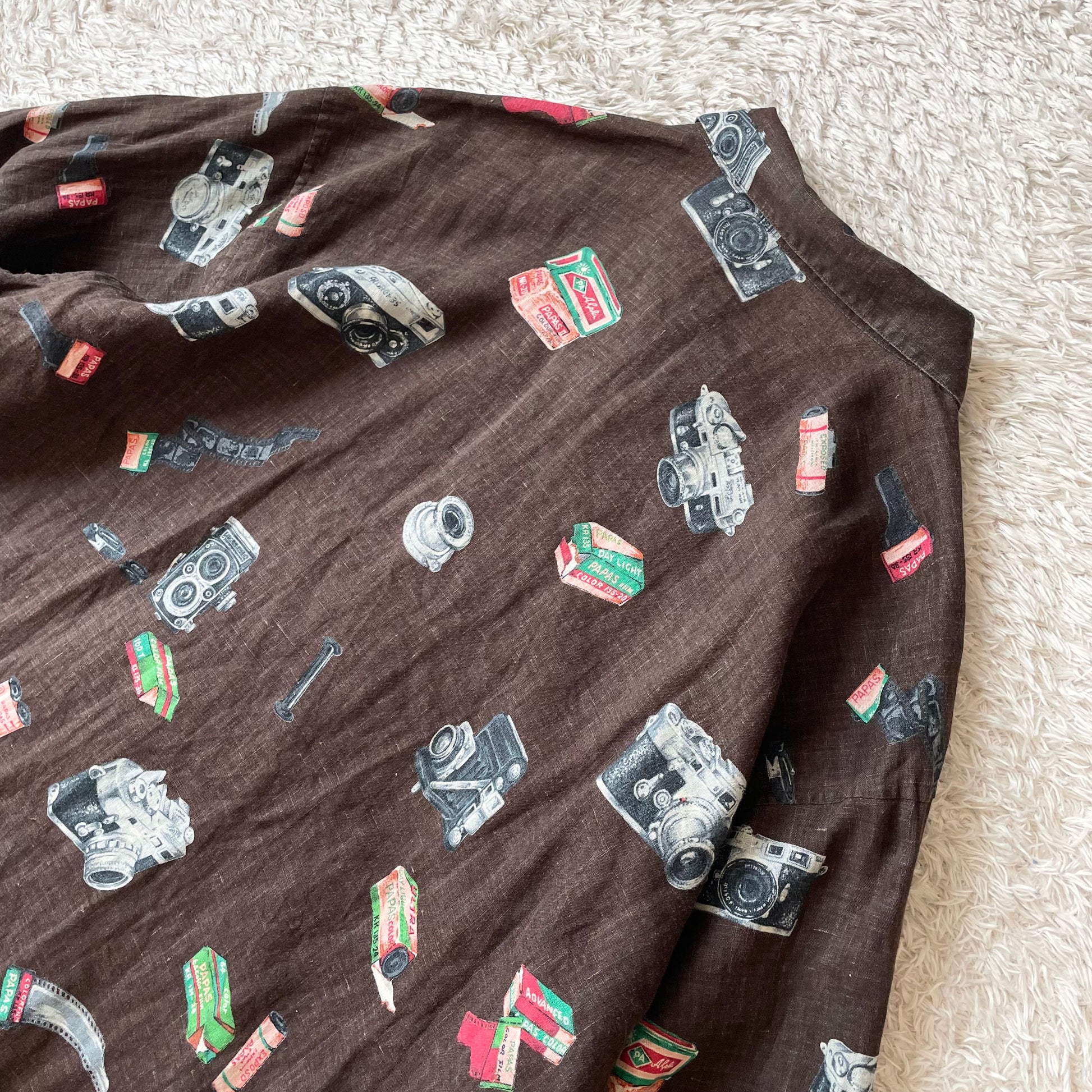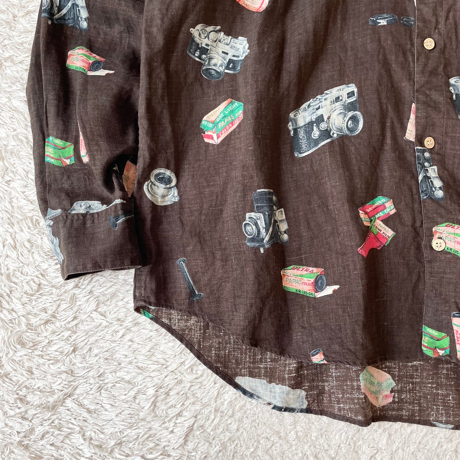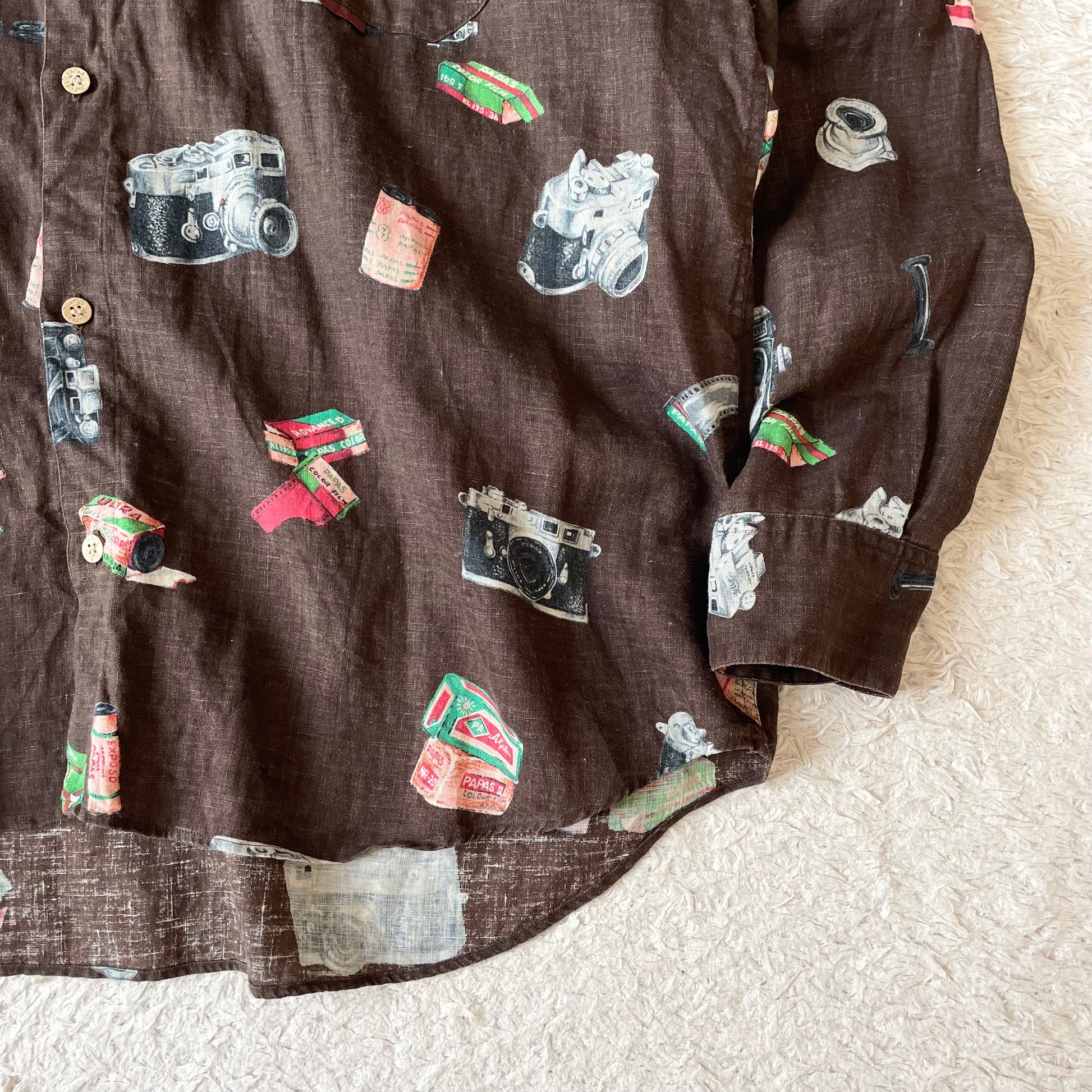 パパス 極美品 PAPAS リネンロングスリーブシャツ L 茶 カメラ