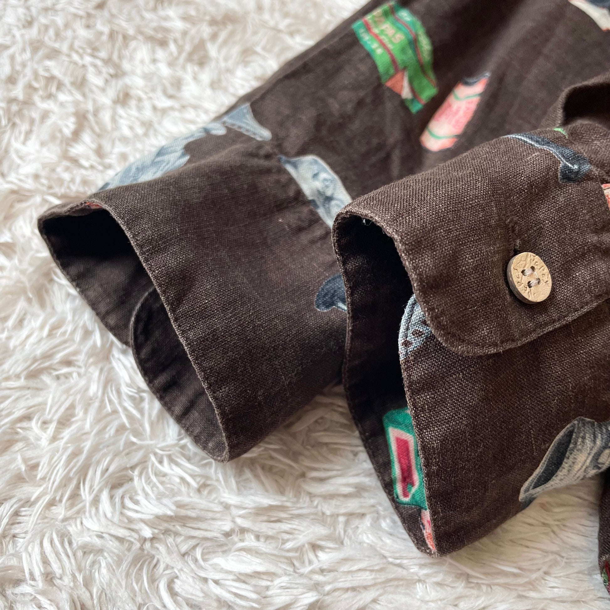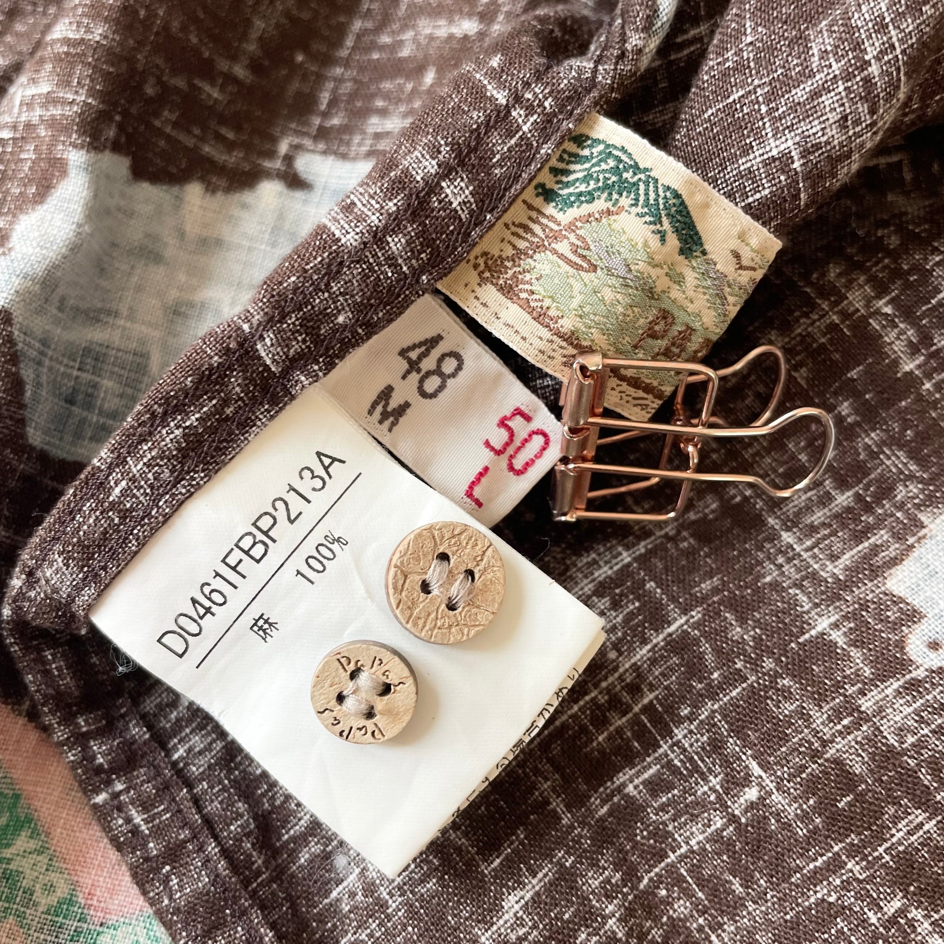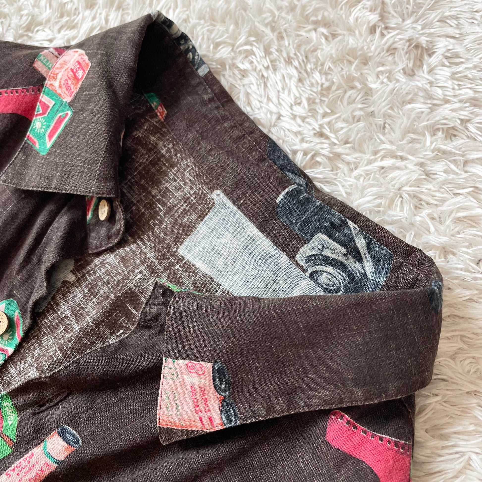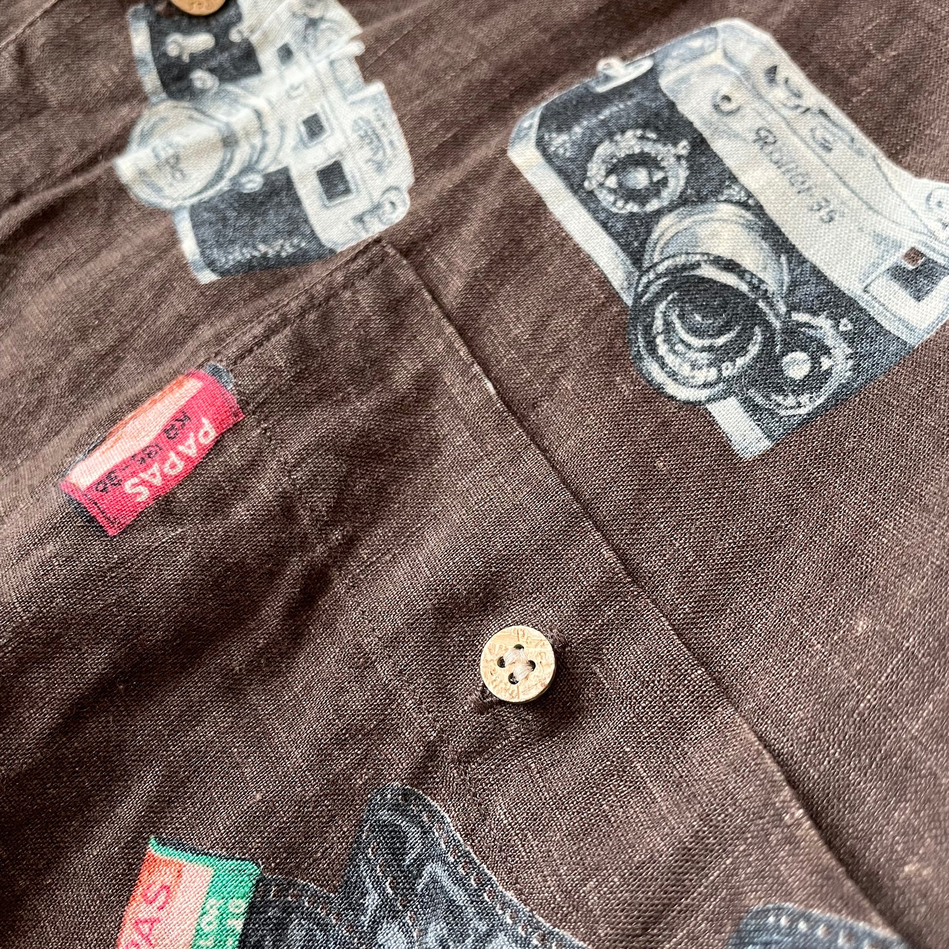 パパス 極美品 PAPAS リネンロングスリーブシャツ L 茶 カメラ