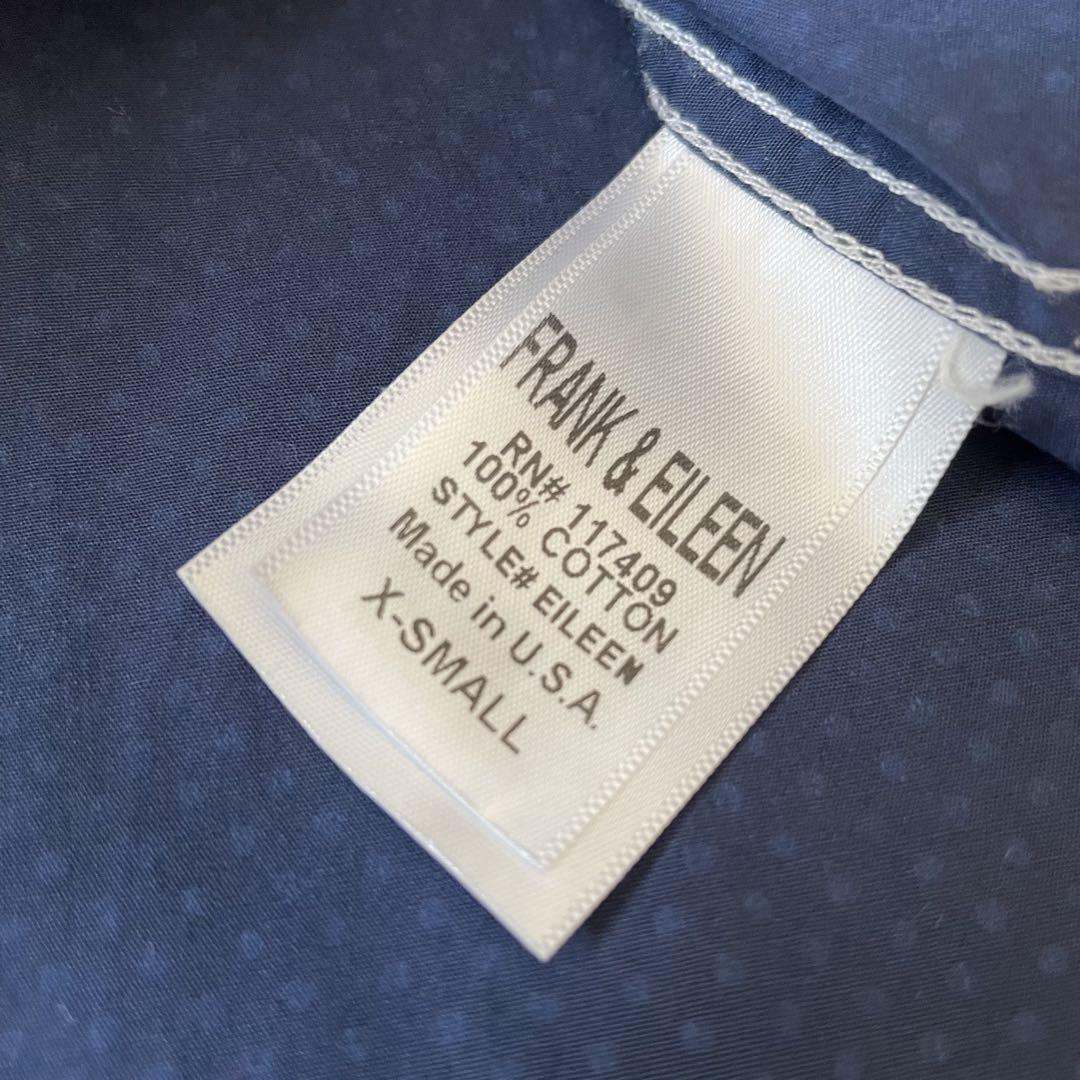 ♣︎ブランド♣︎ FRANK&EILEEN フランクアンドアイリーン ♣︎カラー♣︎ ネイビー 水玉 ♣︎素材♣︎ 写真をご覧ください。 ♣︎サイズ♣︎ 表記サイズXS 肩幅 約43.5cm 身幅 約52.5cm 袖丈 約59cm 着丈 約64cm ♣︎状態♣︎ 目立った傷や汚れもなく美品だと思います。