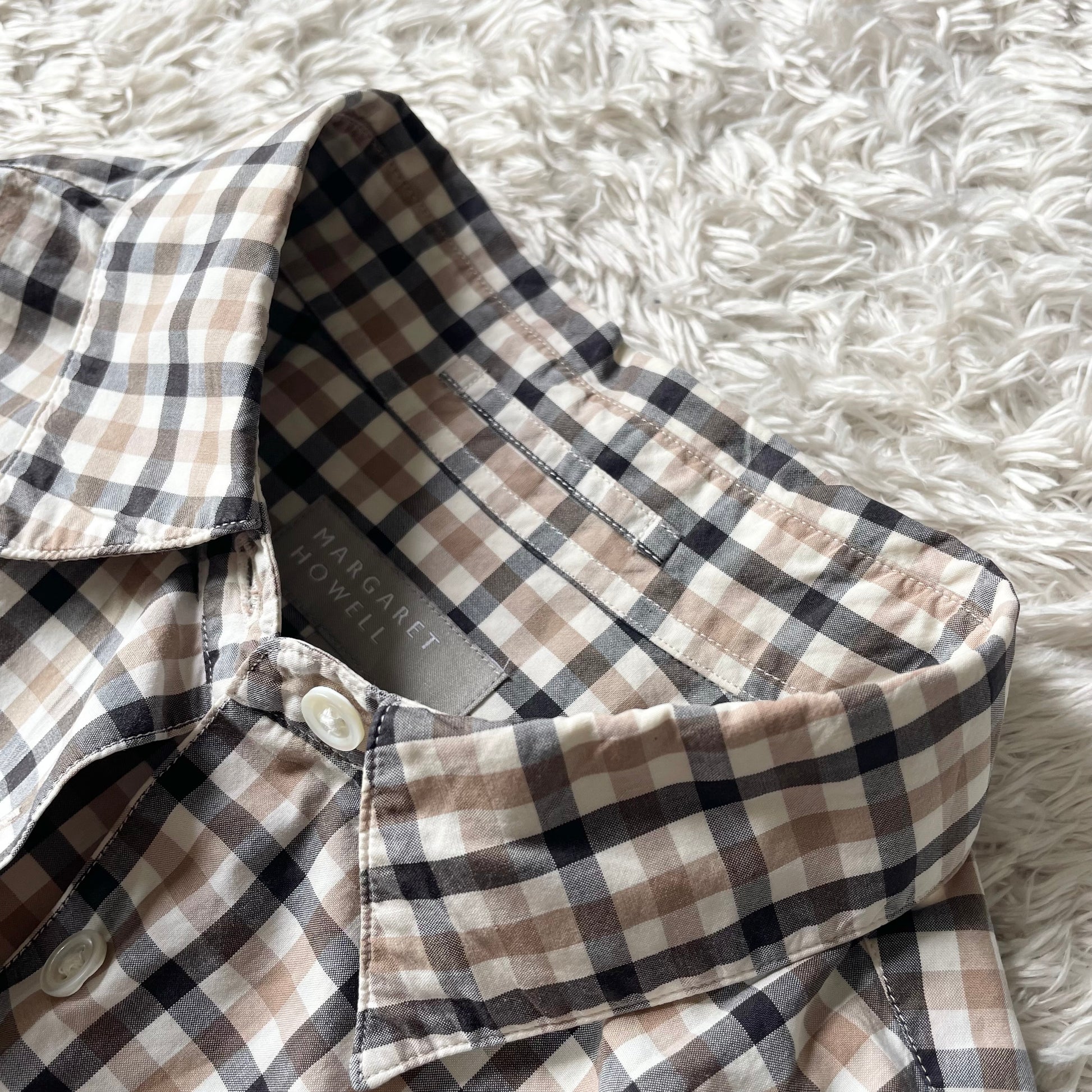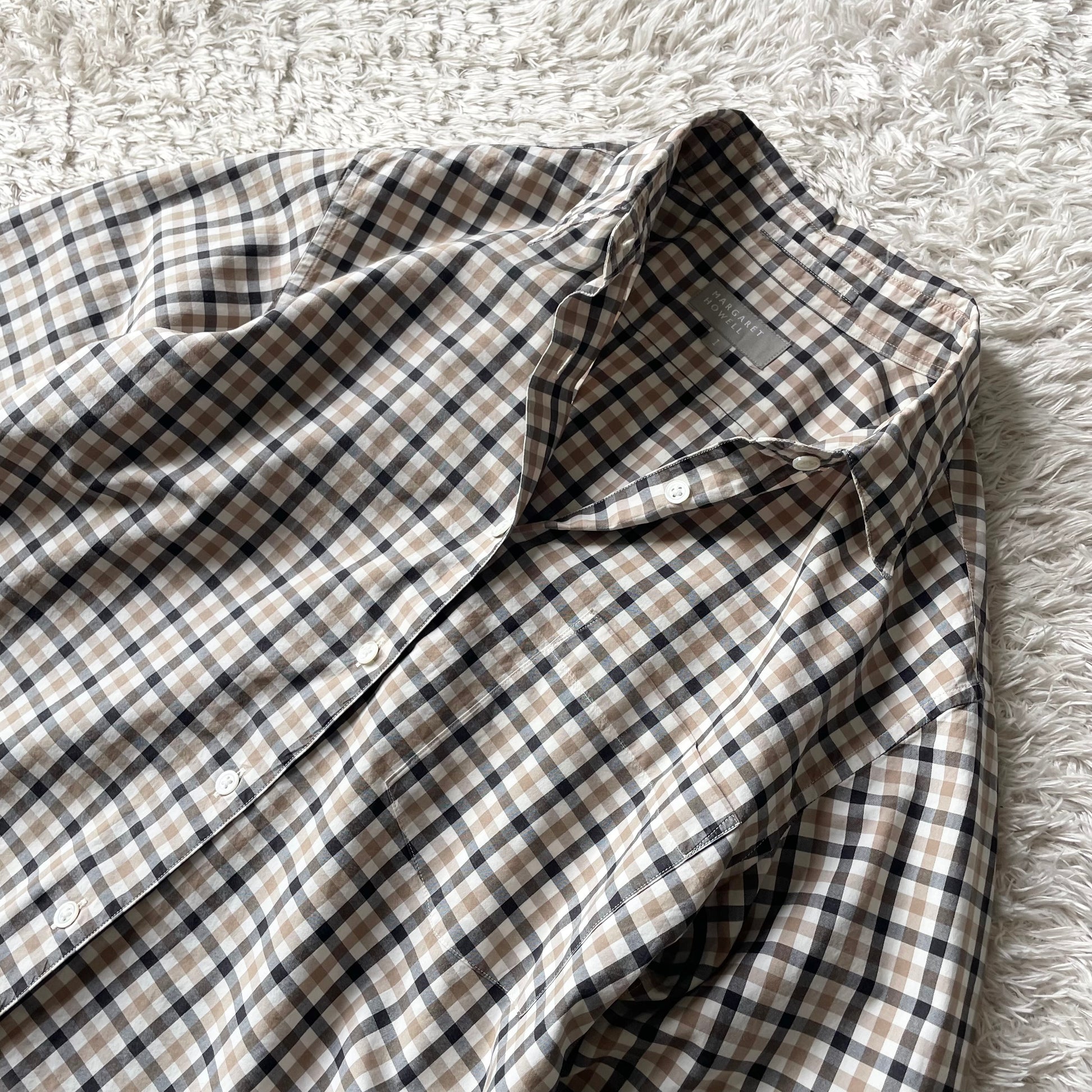 マーガレットハウエル 美品 チェックシャツ 1 ブラウン系