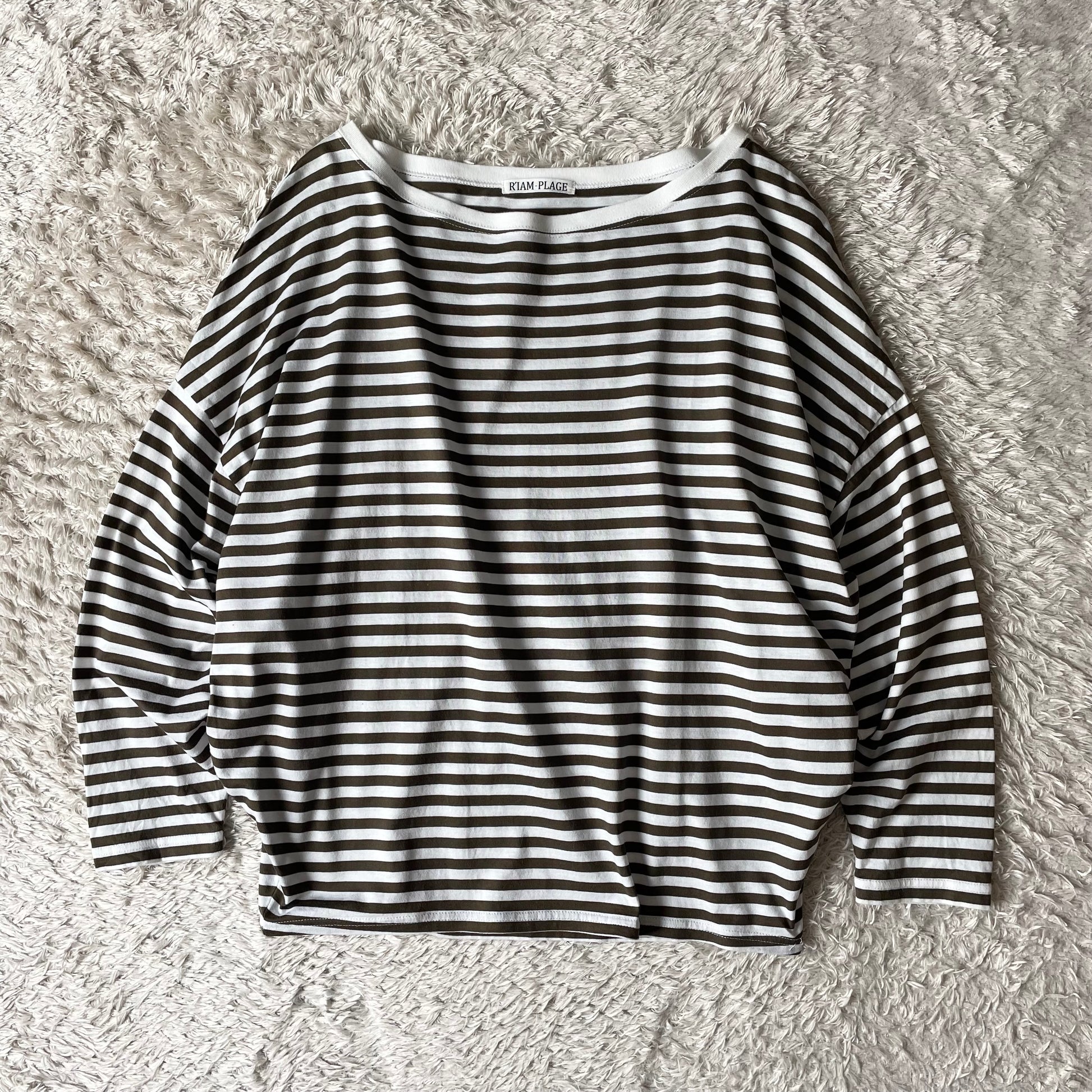 リアムプラージュ 美品 ワイド ボーダー カットソー F 白茶