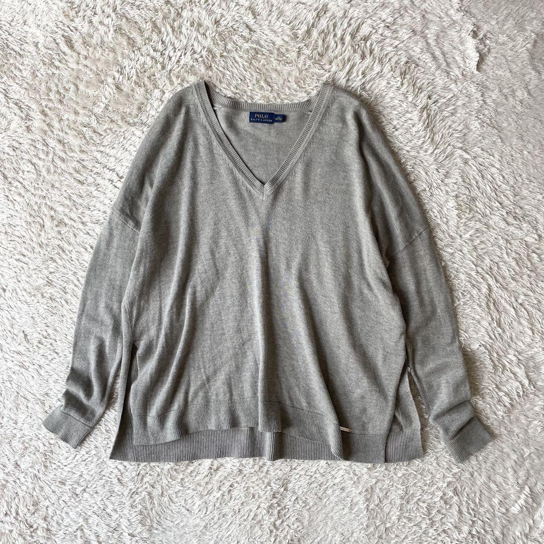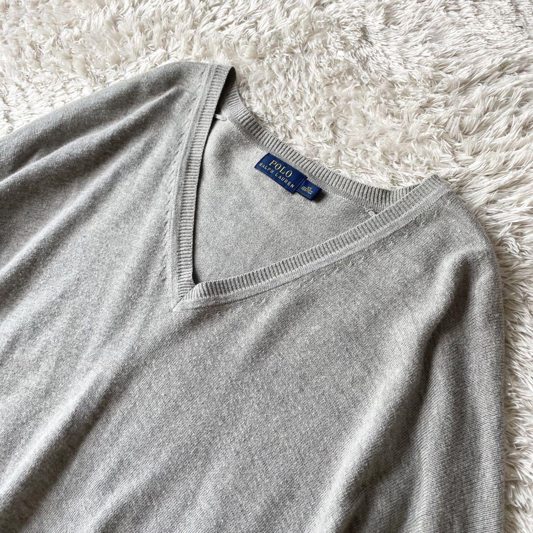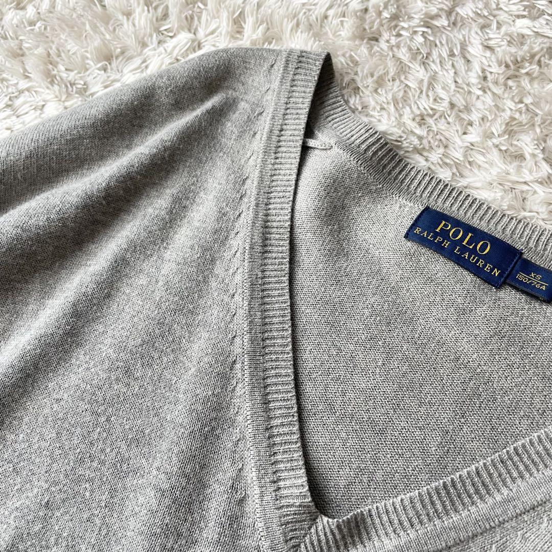 美品 ラルフローレン Vネック ハイゲージニットソー XS グレー