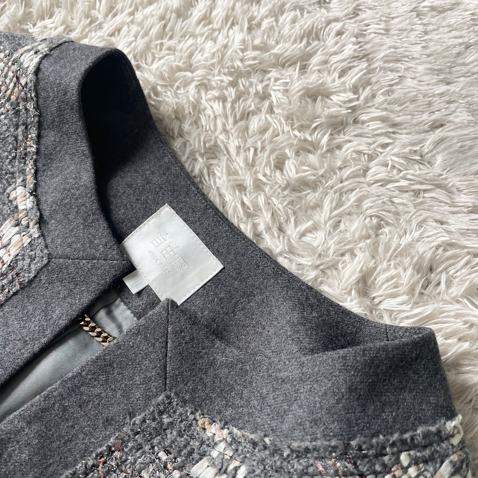 自由区 美品 LINTON ノーカラー ウール ジャケット 38 グレー