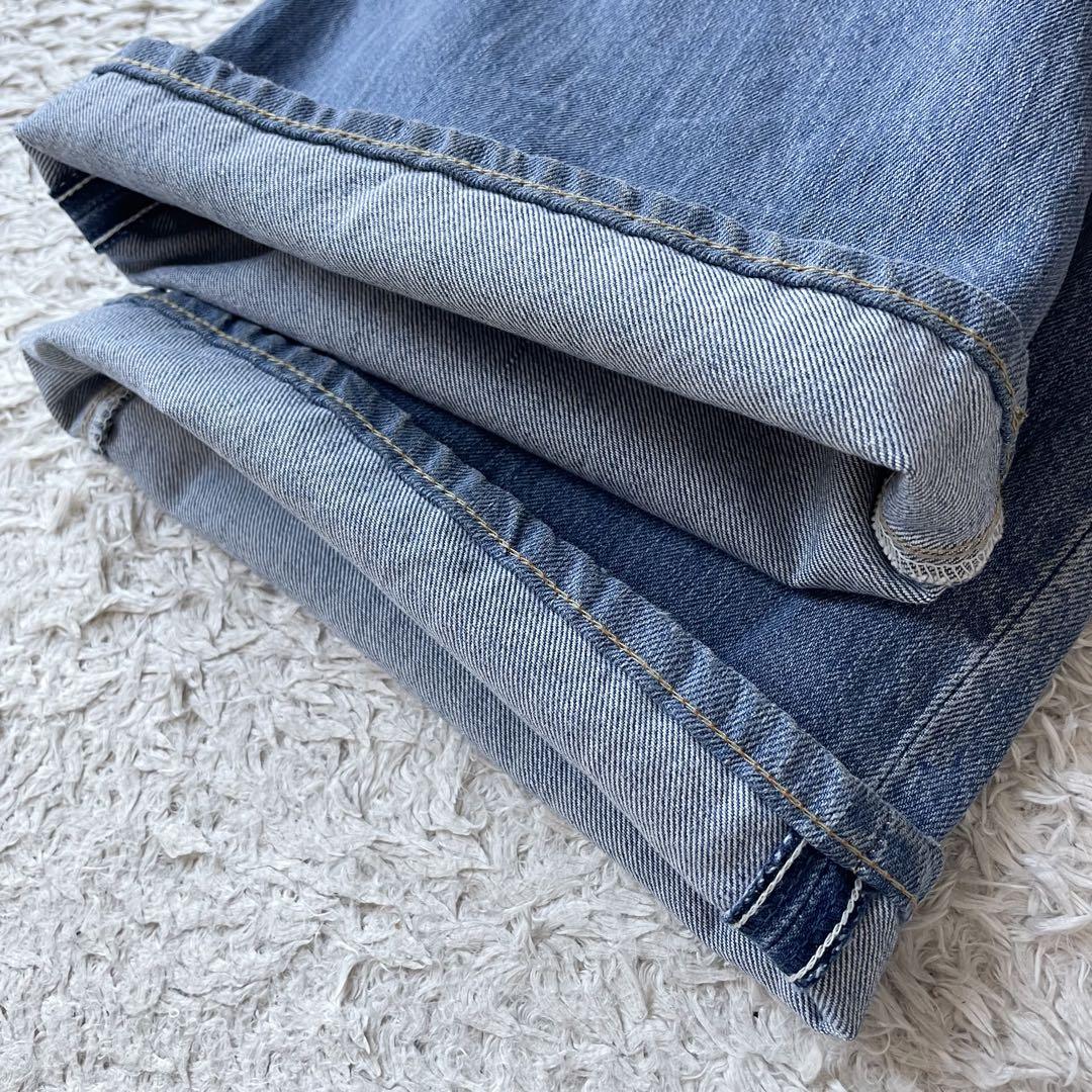 ♣︎ブランド♣︎ 45R フォーティーファイブアール ♣︎カラー♣︎ ブルー ♣︎素材♣︎ 写真をご覧ください。 ♣︎サイズ♣︎ 表記サイズ27 ウェスト幅 約33.5cm ヒップ幅 約45cm 股上 約31cm 股下 約61cm 裾幅 約28cm ワタリ幅 約26cm 総丈 約90cm ♣︎状態♣︎ 少し使用感ありますが、 目立つ傷や汚れなく綺麗だと思います。