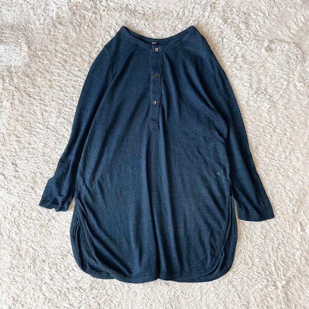 45R 美品 超ガーゼのチュニック インディゴ ワンピース