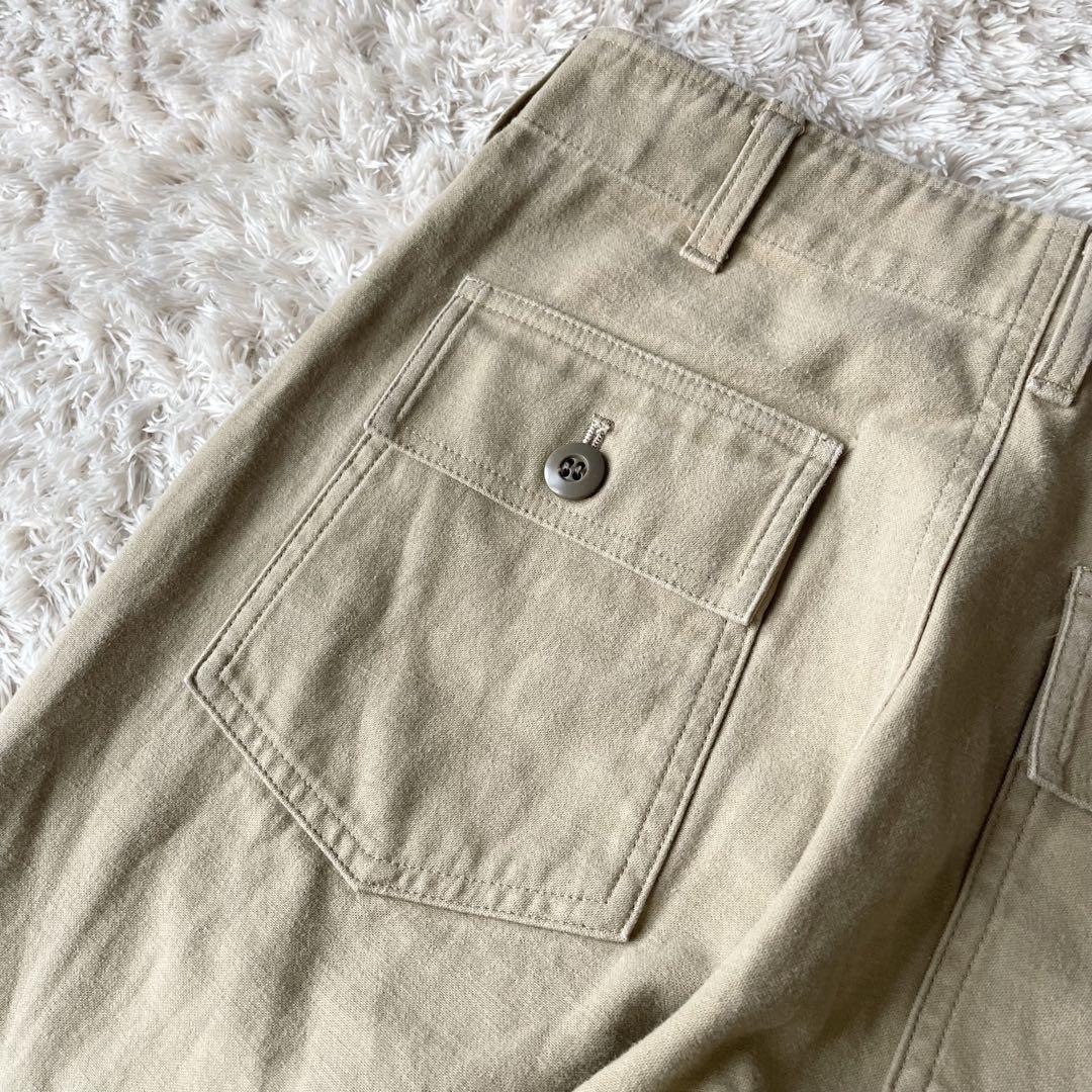 ♣︎ブランド♣︎ the shinzone ♣︎カラー♣︎ ベージュ ♣︎素材♣︎ 写真をご覧ください。 ♣︎サイズ♣︎ 表記サイズ34 ウェスト幅 約33cm ヒップ幅 約47.5cm 股上 約31cm 股下 約66.5cm 裾幅 約17.5cm ワタリ幅 約28cm 総丈 約93.5cm ♣︎状態♣︎ 前面の折り目少し褪せありますが 目立つ傷や汚れなく綺麗だと思います。